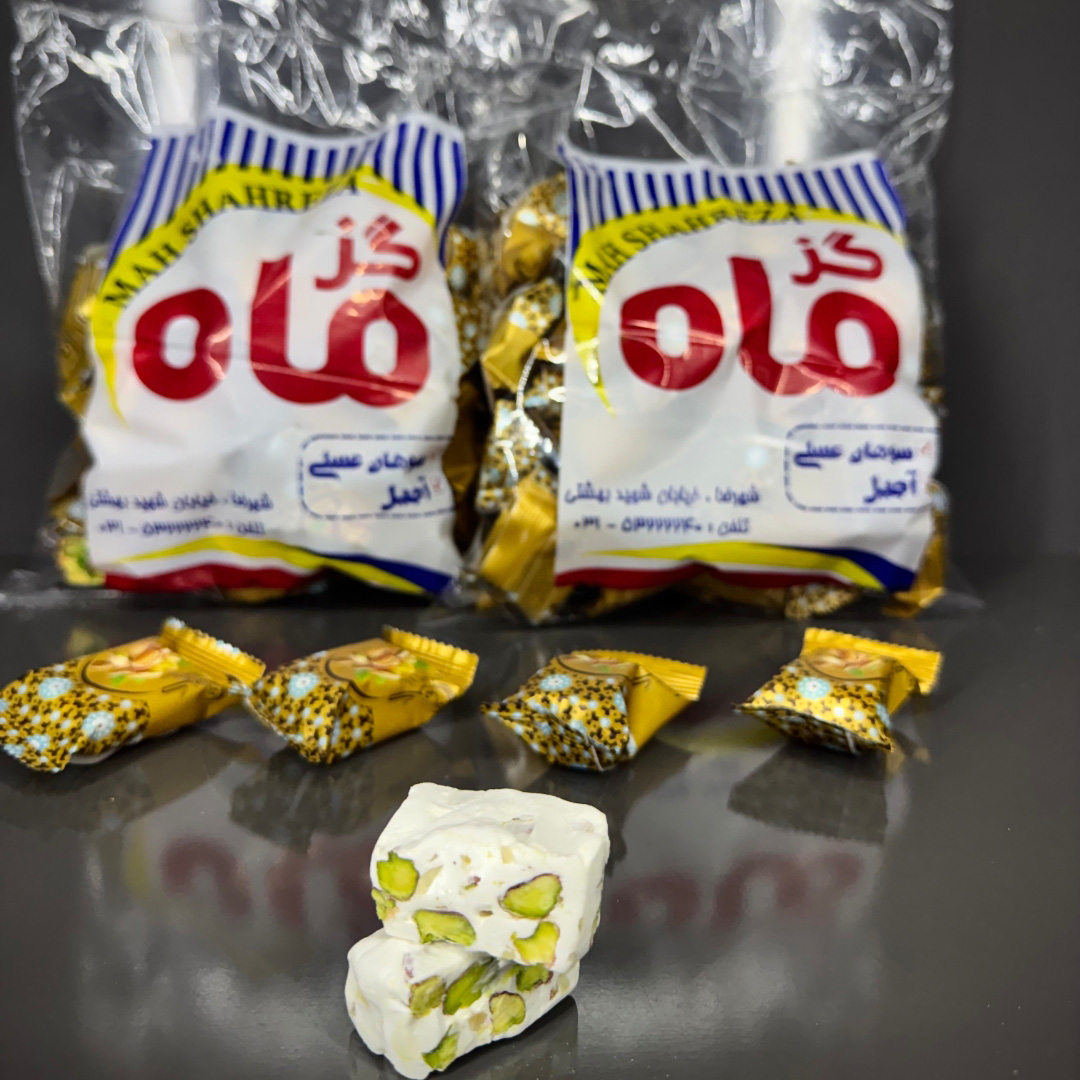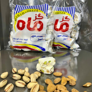گز پسته ای بیدمشکی ویژه قنادی ماه با درصد مغز پسته و خلال بیدمشک 44درصد و حاوی انگبینهای گیاهی و عسل طبیعی