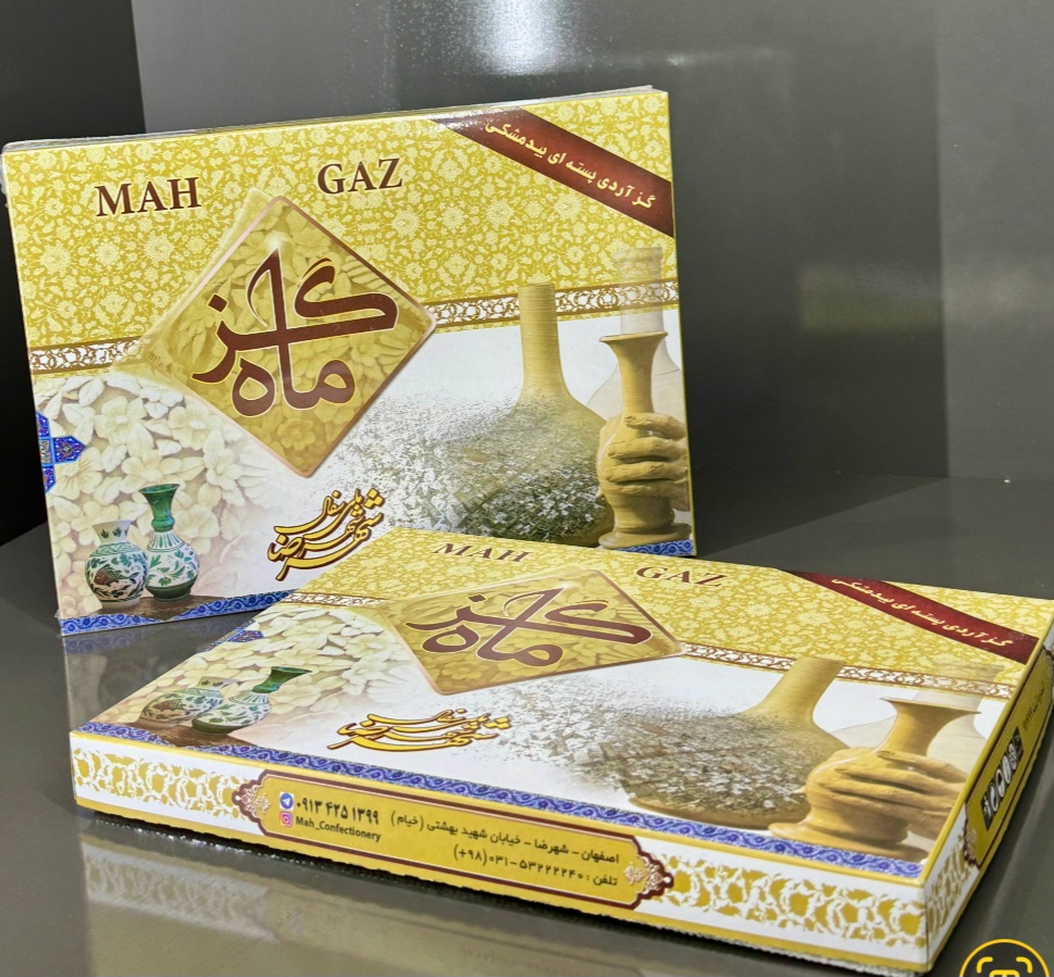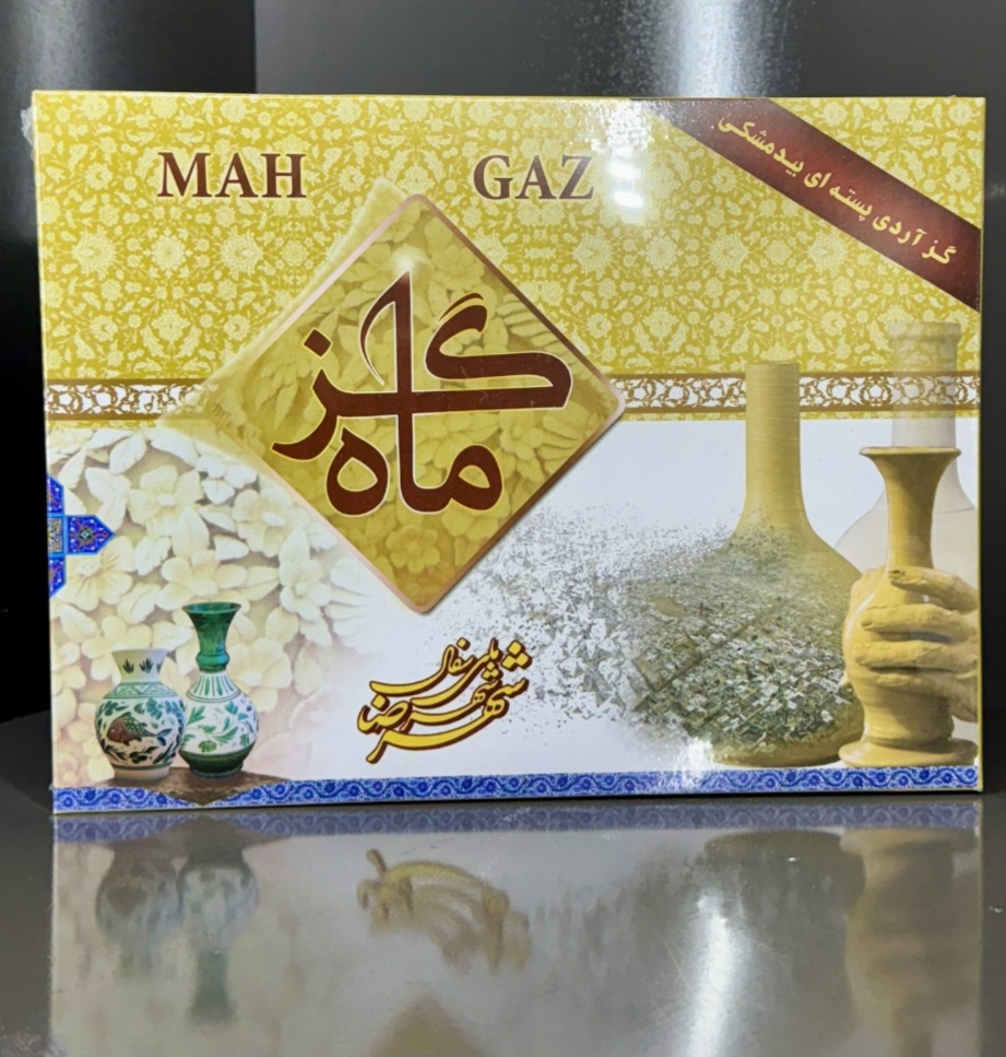 گز آردی پسته ای بیدمشکی ماه(۴۲ درصد): آس گز های آردی ماه توی گز آردی 42 درصد پسته انگبینی خلاصه میشه.چون از همه چیز بیشترین و بهترینش رو داره،این محصول بی نظیر علاوه بر 42 درصد پسته سبز کرمان،شامل 30 درصد از عصاره جادویی گزانگبینه که طعم کم نظیری به این محصول میده،قدمت این محصول نزدیک به 50 ساله میرسه.