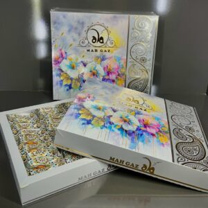 این گز در بسته بندی مقوایی  آماده شده و با تعداد زیادی که توی هر جعبه داره تجربه یه شیرینی فوق العاده رو براتون بسازه. در طرح بسته بندی این محصول طلاکوب های اسلیمی سنتی نمایان گر اصالت و قدمت یکی از شاهکار های تمدن ایرانی است.