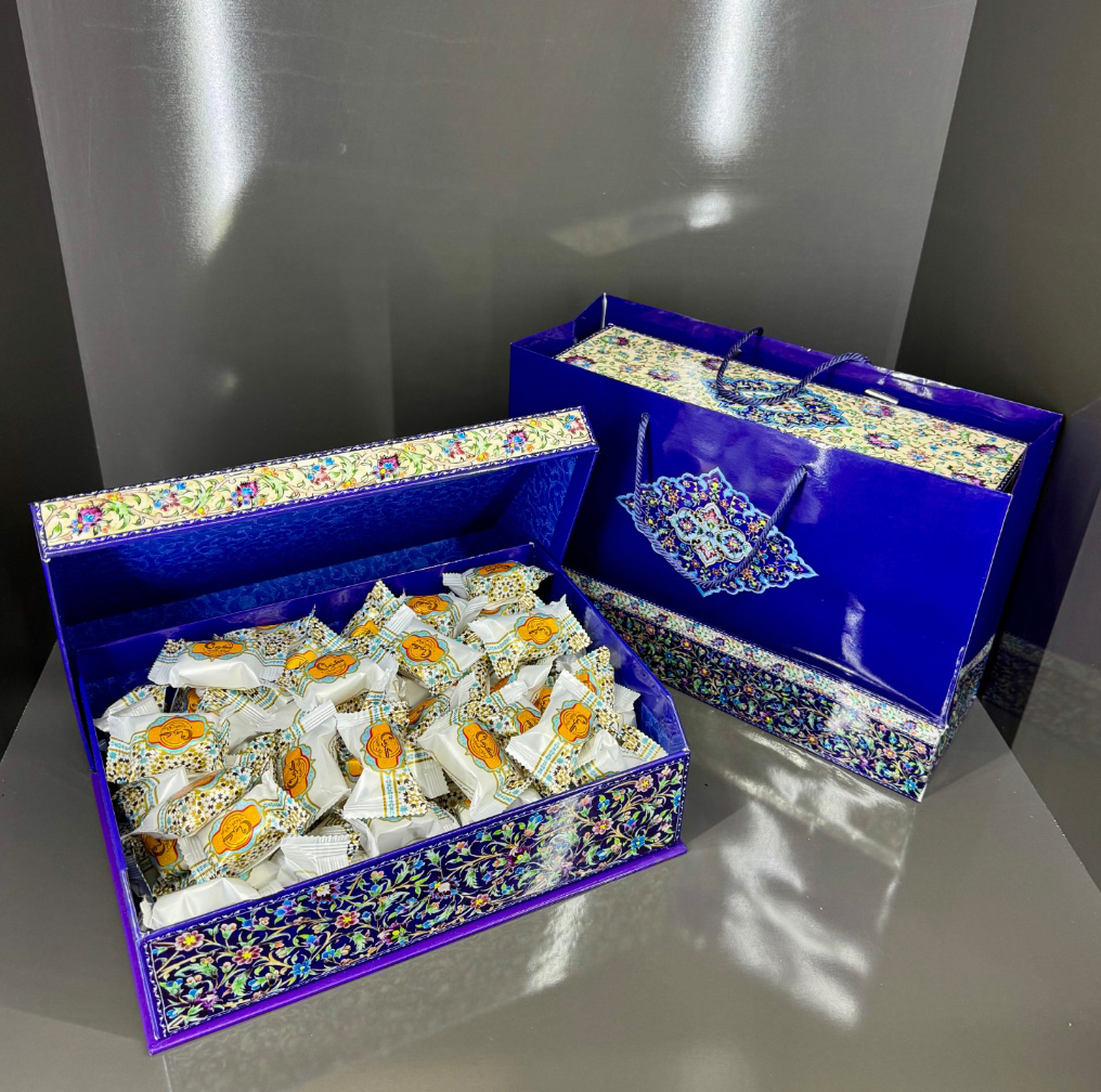 کادویی زیبای ماه حاوی یک کیلوگرم گز مخلوط پسته و بادام 32%